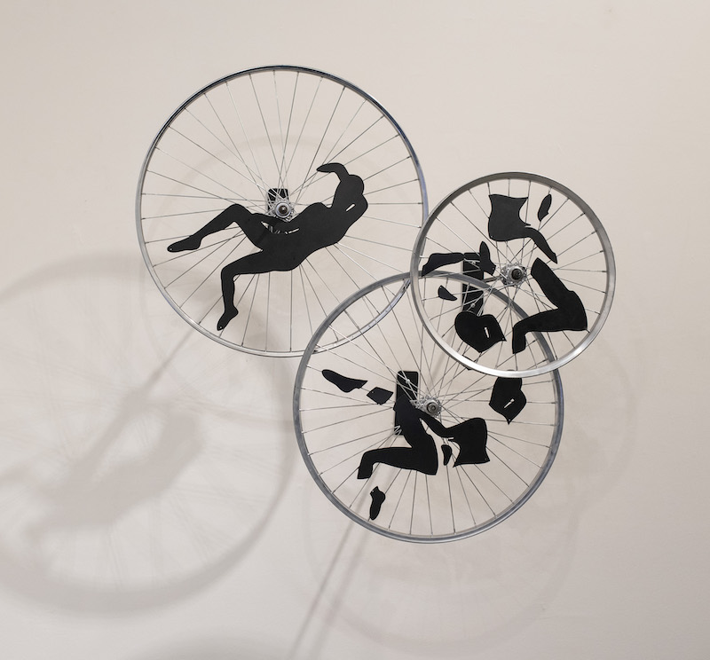 En la obra ¨Desmembrados¨ que actualmente se exhibe en el Centro Cultural Matta, la artista retoma la imagen del hombre que se desvanece mientras gira la rueda de la vida.
