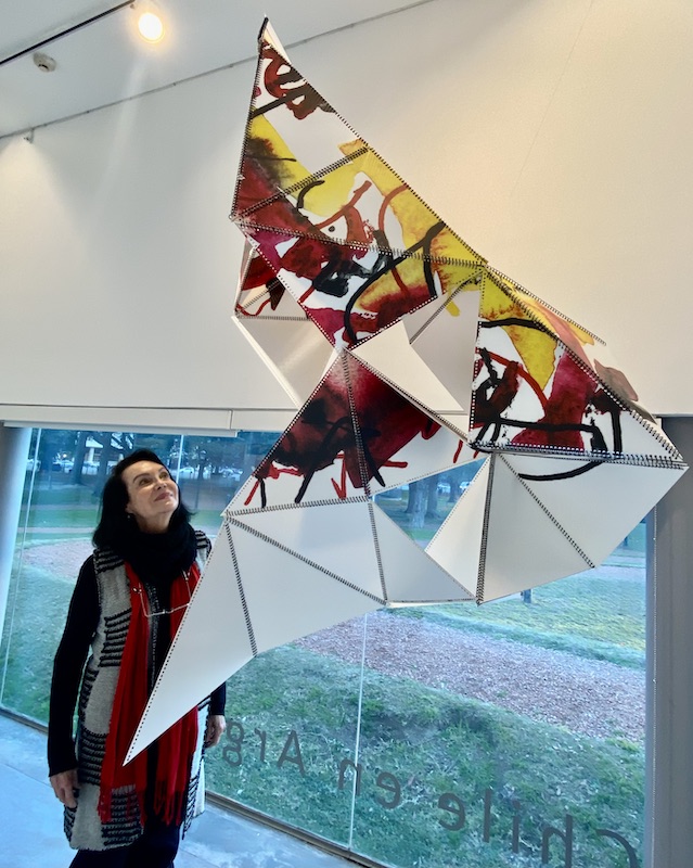 Las tres piezas que integran esta muestra en el Centro Cultural MATTA, siguen el hilo conductor de toda su producción, centrada en el ser humano, la libertad y el equilibrio como eje temático. “Amo la geometría” dice la artista que encuentra en las matemáticas la estructura racional de su obra. Paradójicamente todo proyecto parte de una poesía de su autoría que en cinco líneas sintetizan la idea.
