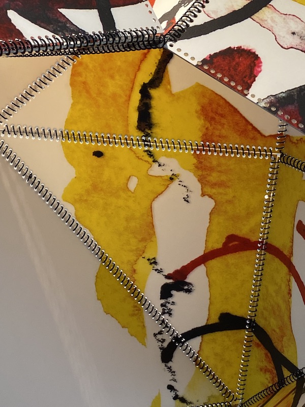 Por otra parte, ¨Mujer fragmentada¨, es un móvil que ocupa la sala principal del C.C.Matta. Está constituido por múltiples piezas articuladas mediante espirales en alusión al block de notas (croquera). Una metáfora sobre las diferentes facetas del ser humano “La vida hecha hoja de croquera”, dice Alicia Larrain y agrega “capítulos de vida que se combinan y multiplican en la cotidianidad de la mujer”. Un damero de ajedrez en la pared completa la idea.