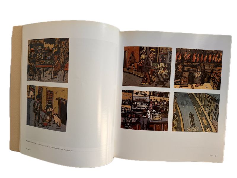 El catalogo reproduce pinturas, tintas y pasteles, realizados durante su estancia en Paris en los que profundiza su eterna ironía.
