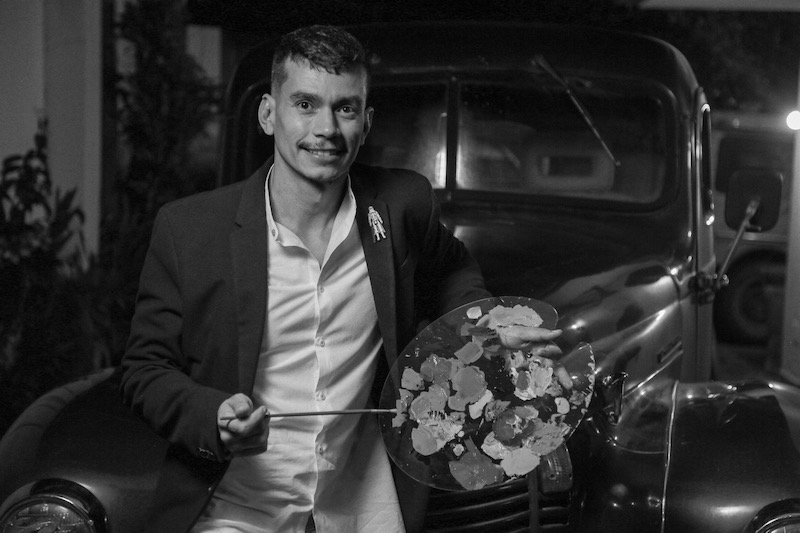 “Soy Toni Ibañez, pintor Boliviano”, comienza afirmando Toni dejando de lado su pasado como ingeniero industrial en su país natal. Una carrera que comienza tempranamente como gran dibujante y desarrolla ni bien llegado a la Argentina. Trabajó de mozo, recepcionista y bartender mientras estudiaba para perfeccionar su principal vocación.