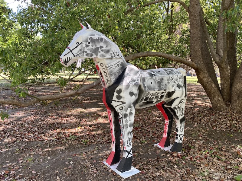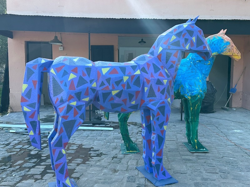 Son cuadros, esculturas y objetos creados por destacados artistas contemporáneos, muchas de ellas para la venta directa y otras, como los caballos intervenidos por Zulema Maza, Eduardo Medici, Liliana Golubinsky y Antonia Guzmán que serán subastados, sobre el final de la feria a beneficio de la Asociación Amigos del Pilar, a fin de continuar con en trabajo solidario destinado a la comunidad iniciado hace mas de 20 años.