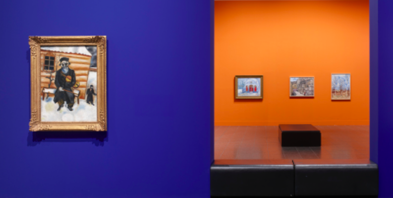 El punto de partida y la ocasión de la exposición son tres cuadros de Marc Chagall, realizados en París antes de la Primera Guerra Mundial y que forman parte de la colección de arte. Se trata de las obras Autorretrato, 1909, El violinista, 1911-1914, y Rabino con limón (Día de fiesta), 1914; Los tres cuadros pueden considerarse entre las primeras obras importantes del artista.